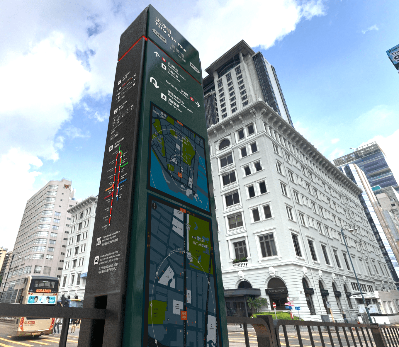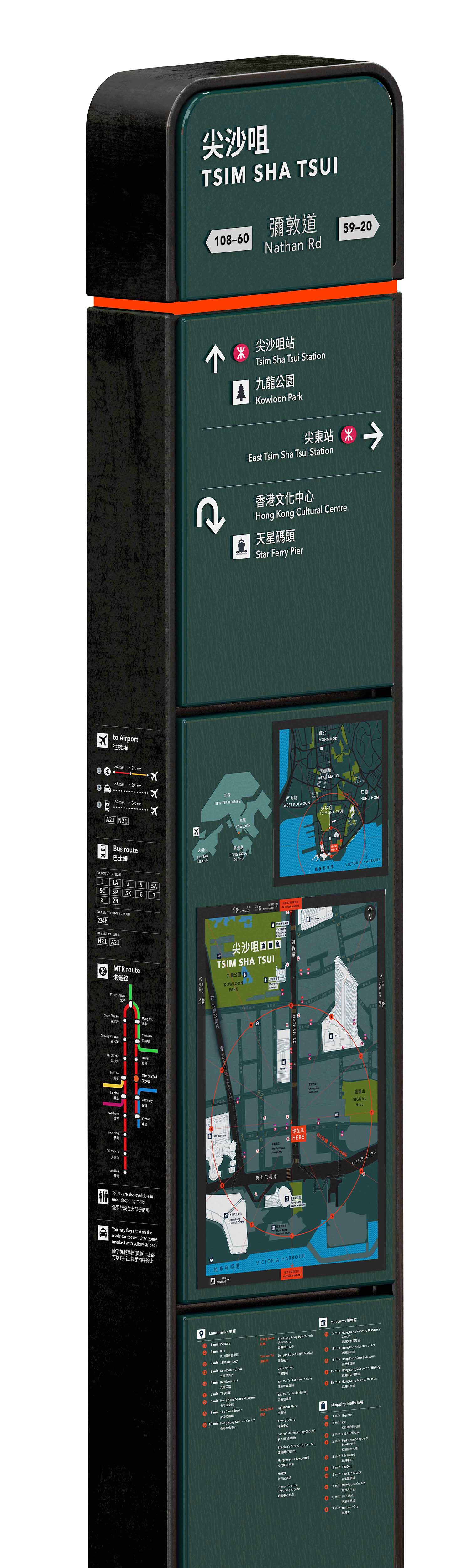 This is a project focuses on helping people navigate the city with ease; it provides a set of signage that encompasses a new visual language and improved information delivery for tourists visiting Hong Kong.